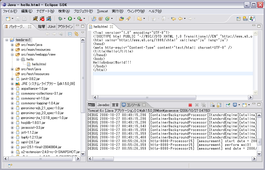 作成した teeda-ex1 プロジェクトに html ファイルを作ってみます。
